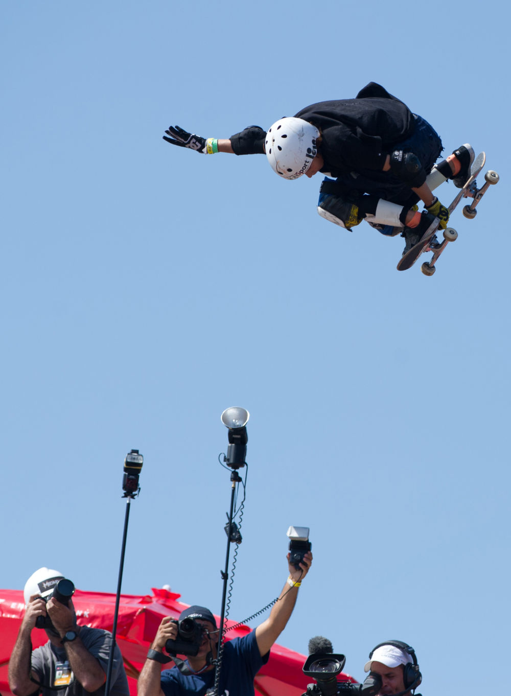 2012年8月26日,当时年仅11岁的美国选手贾格·伊顿在第四届“超级U台”极限大赛滑板组比赛中。新华社记者 翁忻旸 摄