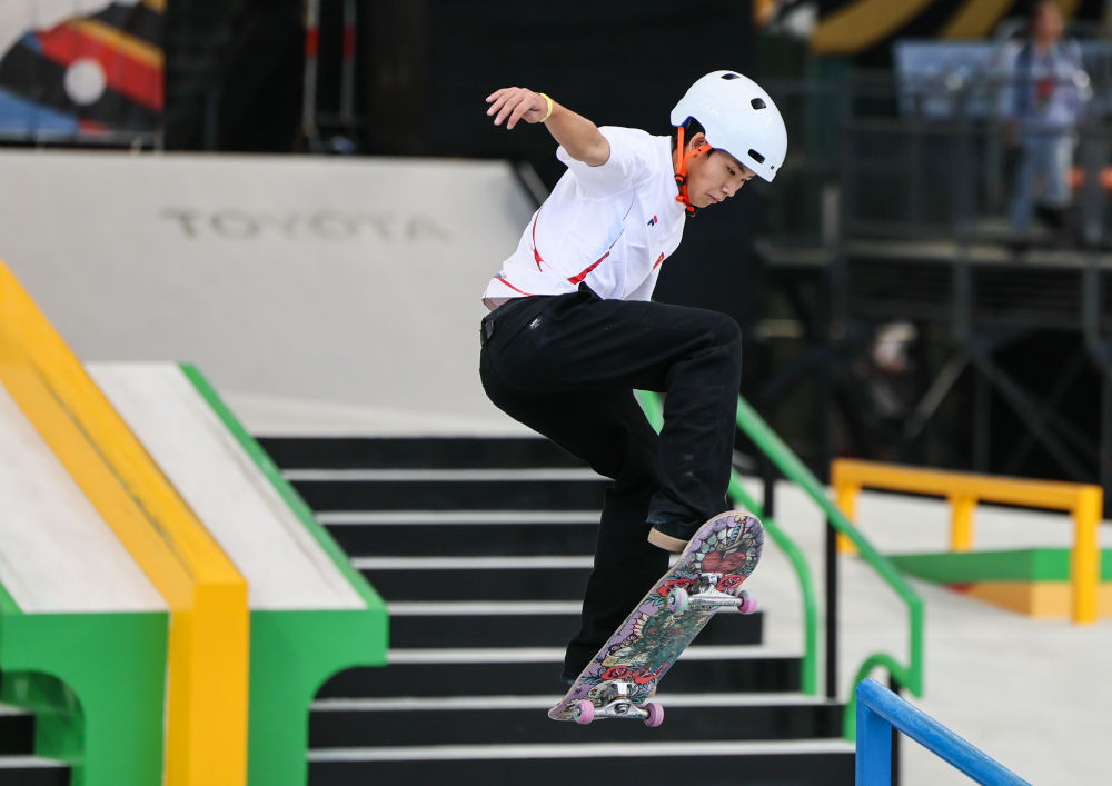 2023年9月26日,日本选手小野寺吟云在杭州亚运会滑板男子街式预赛中。新华社记者 宋彦桦 摄