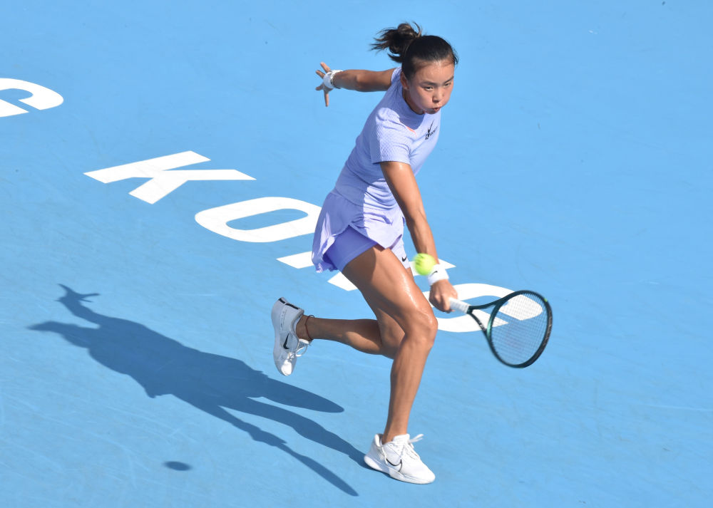10月30日,王曦雨在比赛中回球。新华社发(卢炳辉 摄)