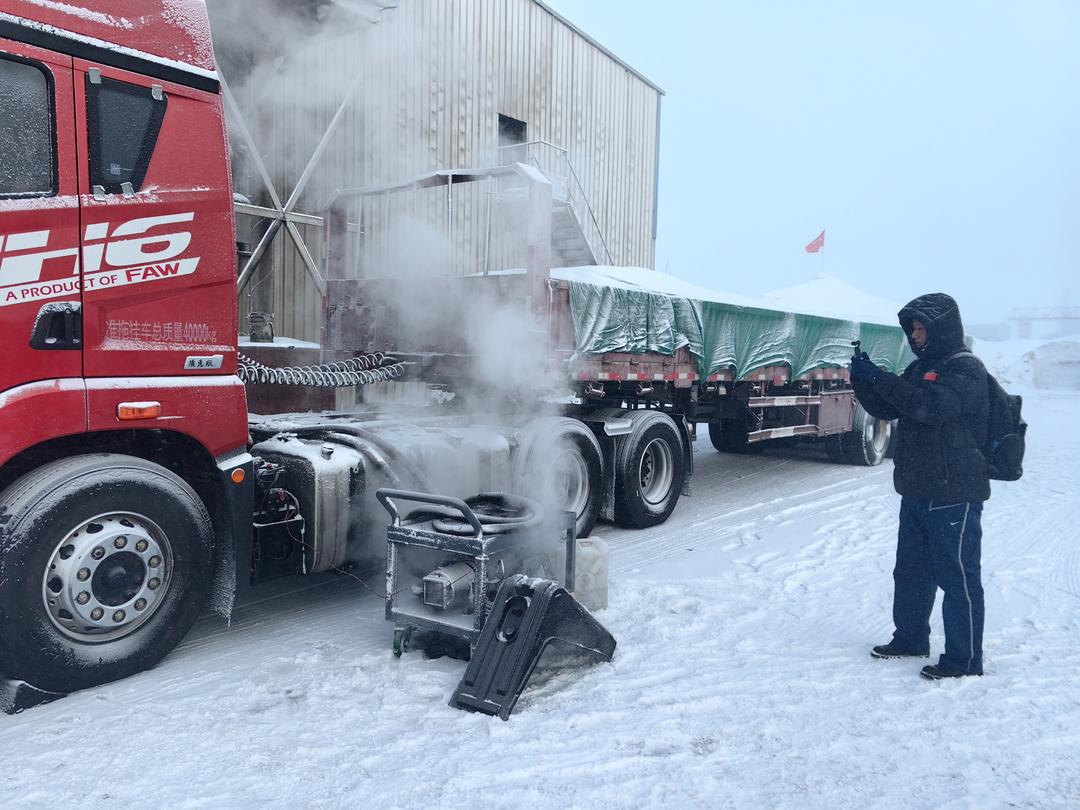 正月初六,内蒙古海拉尔被零下28℃的寒气紧紧包裹。天边才泛起鱼肚白,潍柴动力“三高”试验队队员张培植便开工了。他弓着身子在雪地里迎风前行,记者眯着眼紧随其后,跟他一起上工,给潍柴发动机挑挑毛病。凛冽的寒风犹如锋利的刀片,卷着小雪粒割在脸上生疼,记者戴着口罩,呼出的热气很快在眼睫毛上凝结成霜。