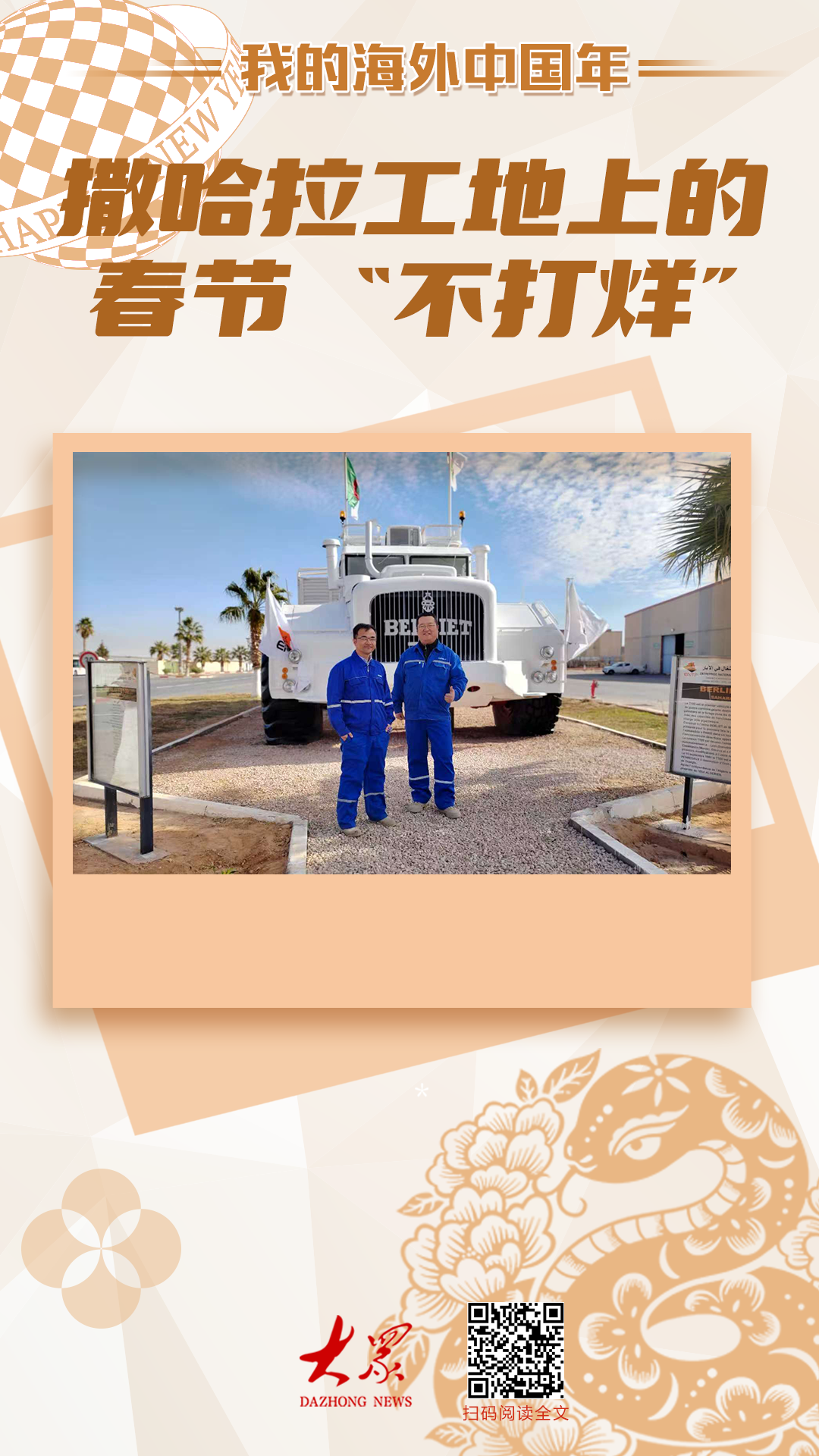 “这里一定要多注意,是我们需要重点巡查检测的地方!”2月3日,正月初六,虽然身处距离家乡一万多公里的阿尔及利亚撒哈拉沙漠腹地,朱帅祁还是和往常一样,一大早便和刘祥龙等团队成员一起,开始对负责区块的钻修机进行日常巡检。这已经是朱帅祁与团队在海外过的第七个年了,他们用敬业和担当,在沙漠中书写着别样的春节故事。