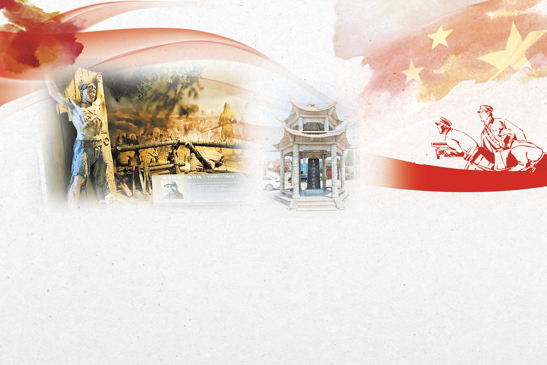 菏泽抗日纪念馆内秦兴体牺牲时的场景雕塑    ◀刘岗村秦兴体烈士纪念碑