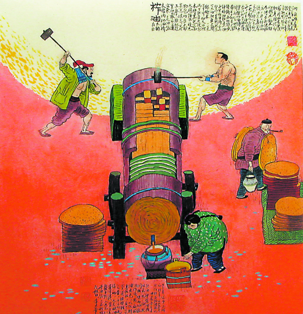 秋收后,农活渐少,人们便排着日子,将家里积攒的大豆、花生等能出油的东西,挑到油坊里榨油。