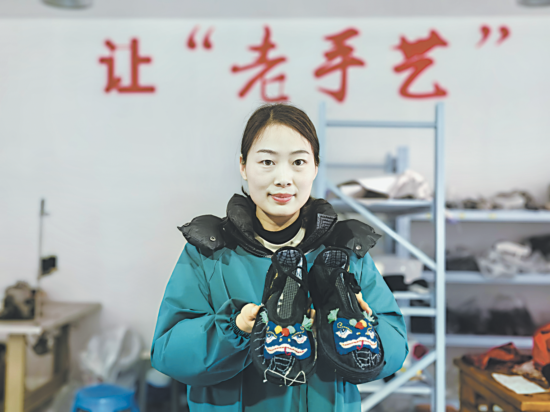 除了蛇年“新”品,李芬还把曹州布鞋放在网络平台进行销售,积累了许多顾客资源,并采用“公司+农户”的生产模式,为农村留守妇女创造就业岗位,带动当地400多名妇女从事手工布鞋加工,人均年增收入2万元以上。