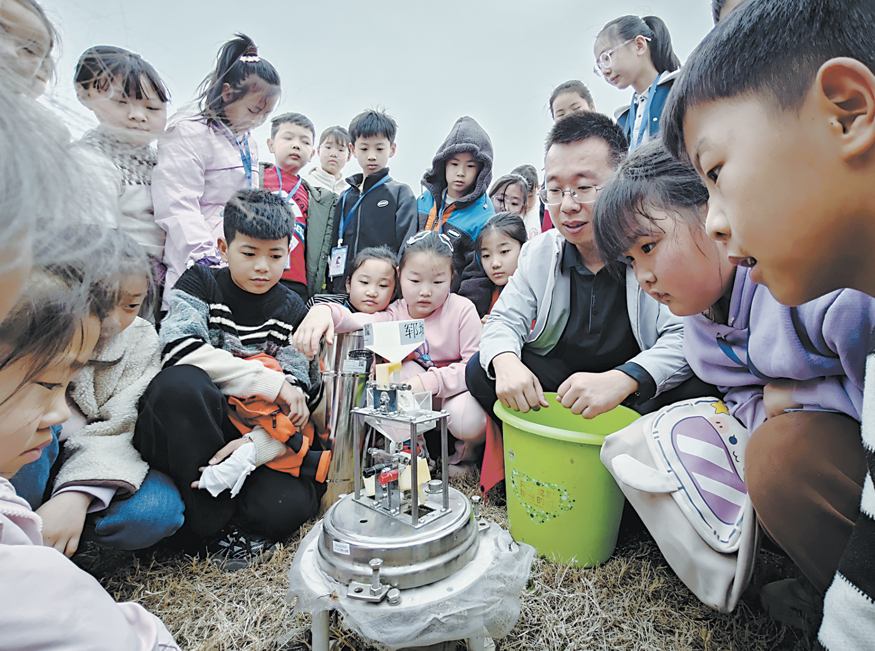 3月23日上午,郓城 200余名小记者在郓城县气象局工作人员的引领下,首先来到气象观测场。百叶箱、风向标、雨量传感器等设备引发了他们的浓厚兴趣。“这个箱子为什么能测温度?”“雷达是怎么‘看到’云层的?”面对小记者的提问,工作人员用通俗易懂的语言讲解了各类仪器的工作原理。在气象预报大厅,电子屏实时展示着卫星云图、雷达回波等数据,预报员现场演示了如何通过分析气象资料来预测天气变化。