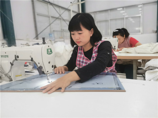 10月8日,在牡丹区沙土镇卓远服饰生产车间内,工人正在赶制订单。作为全市重点乡镇之一,沙土镇因地制宜,通过大力发展纺织服装、食品加工等劳动密集型产业,扩大就业渠道、拓宽就业空间,帮助贫困农民实现就业增收,产业带动脱贫的路子越走越宽广。