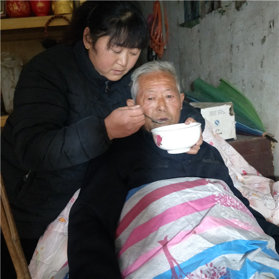 45岁的张云菊家住单县终兴镇王里庄村,丈夫满报文常年跟随他人打零工,收入微薄。张云菊的娘家在不远的徐官庙村,是父母的独生女。“公公、婆婆都65岁了,年纪虽不算大,但都患有高血压病,重活累活不能干,家里家外全靠我帮忙。”张云菊说,她的父母皆年逾古稀,一个患有脑中风后遗症,落下半身不遂,生活难以自理;一个患有冠心病,放置了支架,时常心痛发作。长年累月,张云菊每天照顾着4位老人。