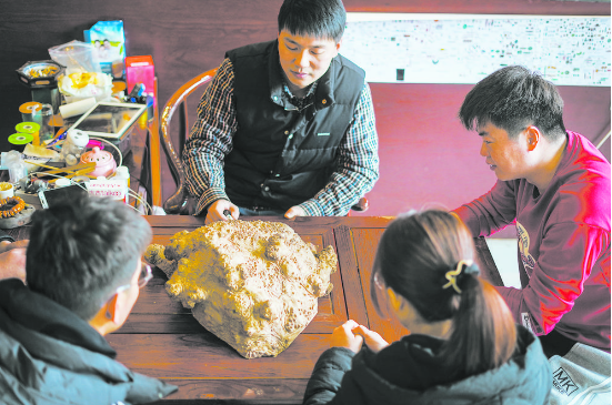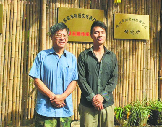 宋云龙(左一)与海派玉雕国家级非遗传承人袁耀合影