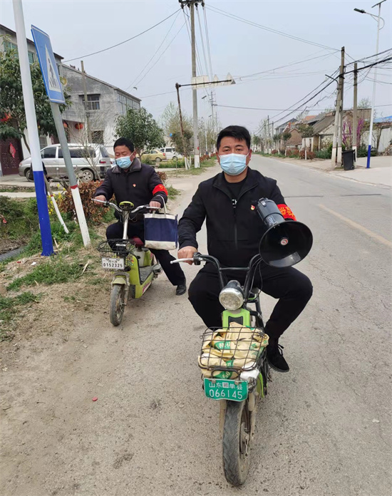 下午3点,白传收骑着电动车带领村干部和党员志愿者分区划片开展村内巡逻,通过小喇叭循环播放宣传防疫相关知识,严格排查群众外出聚集等违规现象。