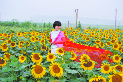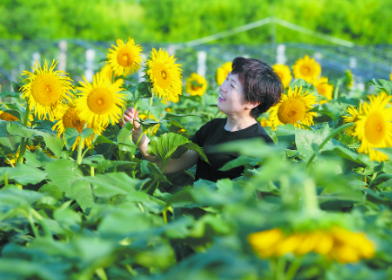 眼下正值向日葵盛开的季节,朵朵葵花怒放,好一派田园风光!