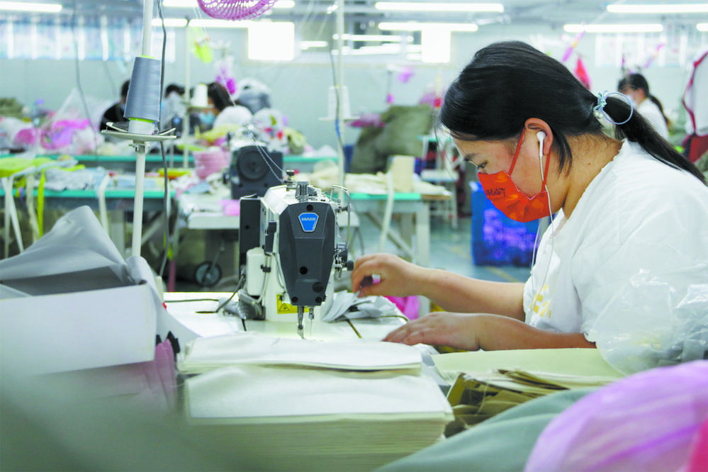8月8日,在牡丹区沙土镇的菏泽鑫隆箱包有限公司生产车间,工人在紧张忙碌。连日来,牡丹区各企业在全面做好疫情防控工作的同时,陆续复工复产,加足马力生产,全力保障市场供应。