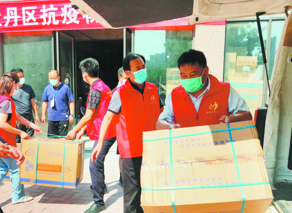 8月6日,牡丹区市场监管局的志愿者在搬运爱心物资。连日来,在牡丹区疫情防控工作中,爱心企业、单位和社会各界人士慷慨解囊,踊跃捐资捐物,助力全区疫情防控,彰显了社会担当和奉献精神。通讯员 郜玉华 武新忠