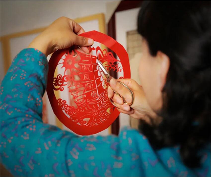 四川黄河九道湾、甘肃大水车、宁夏丝绸之路驼队、山西壶口瀑布、河南三门峡大坝、山东“一山一水一圣人”……蜿蜒万里的黄河沿岸,各地风土人情跃然剪纸之上。这幅荣获第十五届“中国民间文艺山花奖·优秀民间工艺美术作品”的《黄河情》,出自于非物质文化遗产传承人杨秀玲之手。