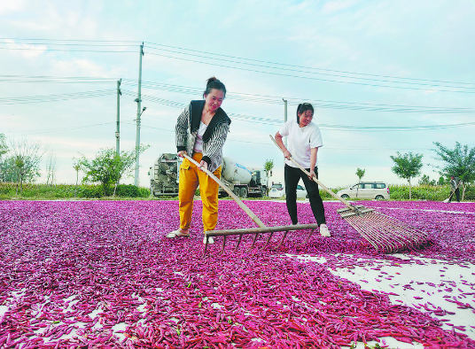 9月27日,郓城县张鲁集镇状元张楼村,村民正在晾晒辣椒,田间地头、房前屋后呈现出红红火火的丰收景象。近年来,郓城县采取“种植大户+公司+农户”的模式着力推进辣椒标准化种植,强化辣椒良种工程建设,发展订单农业,培育新型经营主体,努力推动村集体经济持续增收,带动当地群众就业增收。