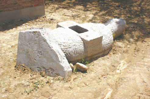 据了解,遗址地表以上原建有历山庙完小校舍,现建筑大部分已拆除。“遗址范围内挖掘出土的石构件,如碑、碑座、柱础等,大都毁于文化大革命期间,现散落在跨越西侧的新建庙宇院落内,可以辨别年代的有元碑、明碑和清复制碑各一通,无法辨别年代的残损石构件约15块。”路维民介绍说,“再加上之前黄河水患造成的泥沙淤积将历山遗址埋于地下,遗址西侧和北侧的大水坑对遗址文化层造成了一定的破坏。二十世纪五十年代,原有舜庙建筑被拆除,石碑被拉倒。整个遗址上生长的高大乔木,因遗址距地表较浅,树根对文化层造成破坏,经雨水冲刷,造成水土流失。”