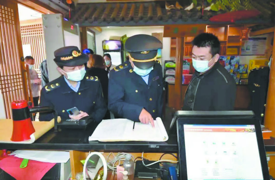 检查中,督导组以大中型餐饮服务单位婚庆宴席承办者为重点检查对象,以疫情防控措施落实为重点内容,对餐饮单位、酒店等经营场所疫情防控措施落实情况进行详细检查。要求经营单位设立专门人员,落实进店人员戴口罩、扫码、测体温、查验核酸检测阴性证明及行程码,并定期对店内环境进行消杀。检查的同时,执法人员督促宴席集体聚餐落实“喜事缓办、丧事简办、宴请不办”的要求,按照“谁举办、谁负责”的原则,严格控制宴席数量及就餐人数,严格执行宴席集体聚餐申报备案制度。