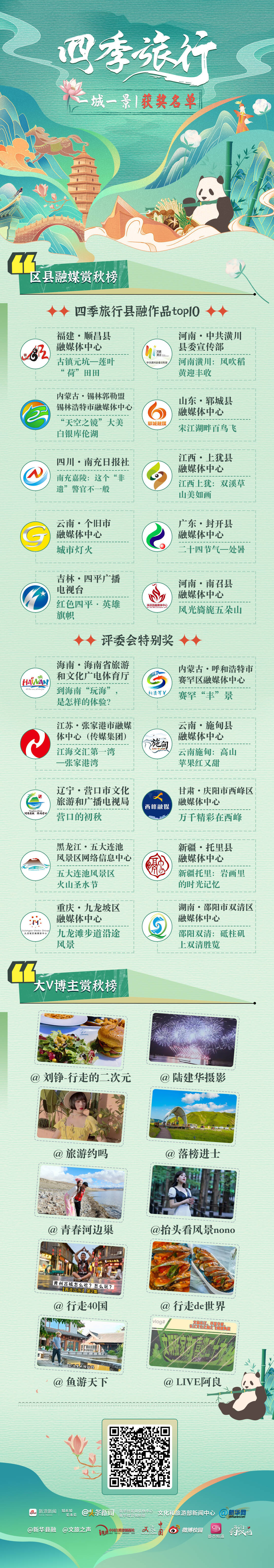 由新浪新闻、头条新闻联合新华社新闻信息中心、音视频部、文化和旅游部新闻中心、新华网、自然资源部、文旅之声、文旅中国、新华县融、都市频道等共同发起的#四季旅行# 第六季优秀作品于9月30日正式公布。