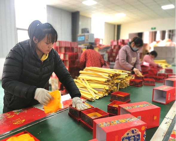 2月13日,牡丹区安兴镇新翰印刷包装生产车间内,工人正在加工包装盒。据悉,2022年牡丹区不断引导企业加大生产力度,促进经济稳步发展,新增城镇就业12059人,发放创业贷款3.15亿元,带动就业6526人,就业渠道不断拓宽。