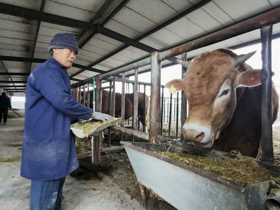 2月16日,牡丹区沙土镇鲁西黄牛繁育保种基地,养殖户正在喂养鲁西黄牛。近年来,当地政府依托独特的资源和区位优势,引导农民通过“企业+基地+农户”、大户领养、小户大养的模式,大力发展鲁西黄牛特色养殖,带动农民增收,助力乡村振兴。记者 李若生 摄