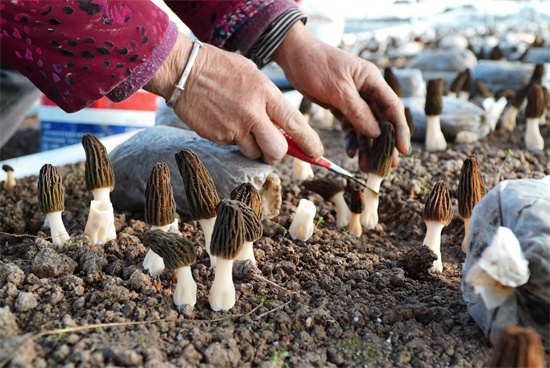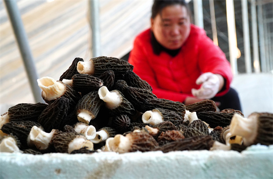 2月22日,在山东省成武县汶上集镇,村民在整理收获的羊肚菌。近日,在山东省成武县,羊肚菌陆续达到成熟收获标准。当地根据市场需求,发展羊肚菌产业,带动村民就业增收。