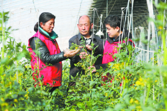 日前,东明县组织青年干部成立“青春助农服务队”,深入田间地头,助农增收致富。图为沙窝镇新录用公务员与农技志愿者在该镇富硒农业园蔬菜生产基地,了解西红柿苗长势情况。