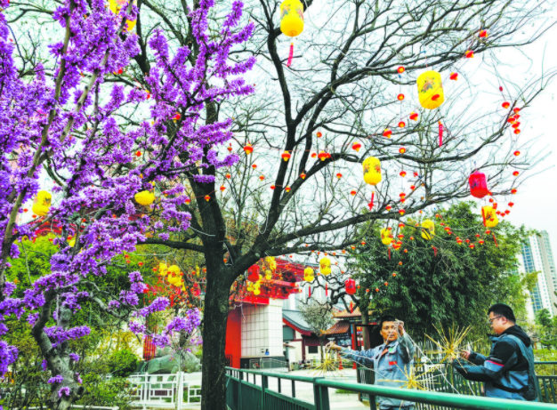3月26日,在牡丹区牡丹街道办事处的百花园里,工作人员在布置园内景观,为开园作准备。百花园有近千个牡丹品种,其中牡丹植株百年以上的有500余株,是国内少有的百年牡丹聚集园之一。还有一株高丈余、冠5米多的明代牡丹被称为“牡丹王”,是游客赏花时的网红打卡点之一。