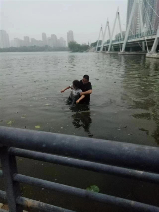 程立建是一名退伍军人,常年保持着晨跑的习惯。5月18日5时,他和往常一样在赵王河附近晨跑,当跑至长城路桥南侧时,看见一名30多岁的女子坐在岸边,双腿浸泡在水里。女子的行为引起了程立建的注意,他迅速走下台阶,朝女子走去。“女子突然跳入河中,向河中央走去,岸边有3位晨练的大爷劝阻,女子根本不回头。”程立建告诉牡丹晚报全媒体记者,情况紧急,他唯一的想法就是救人,当他跨过岸边的护栏时,女子已离岸两三米远,河水淹没了她上半身。程立建来不及脱掉衣服和鞋子,纵身跳入水中,他一边呼喊,一边奋力走向落水女子,当他走到女子身边时,两个人已距离岸边四五米远,水深及胸。