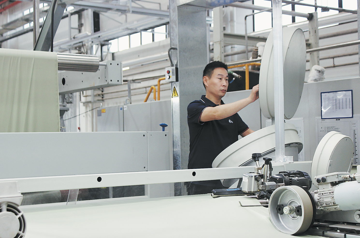 5月24日,定陶区山东华泽高端纤维新材料产业园,工作人员正在作业。该项目总投资58亿元,设计年产高端面料3亿米及功能性新材料、高端户外服装等,立足于国际先进、国内最领先的发展定位,80%的设备从德国、意大利、日本进口,集各个国家纺织领域最先进、最高端设备于一体,将实现整个园区污水“零排放”。整个园区全部建成后,产值可达200亿元以上、税收10亿元以上。