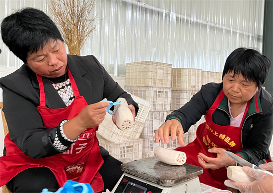 5月25日,在东明县刘楼镇的金满源食品厂内,新鲜的莲藕在这里有序地进行清洗、切段、真空包装。据了解,该食品厂生产的藕片、藕段主要销往四川以及韩国、日本、美国等国家和地区,年产量大约在5000吨,同时聘用了当地劳动力在此就业。