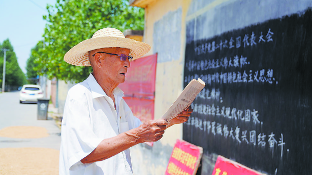 “只要身体吃得消,我愿意一直做下去。”6月17日,在定陶区半堤镇大徐村街头,91岁高龄的李永祥正拿着粉笔一笔一画地书写板报。