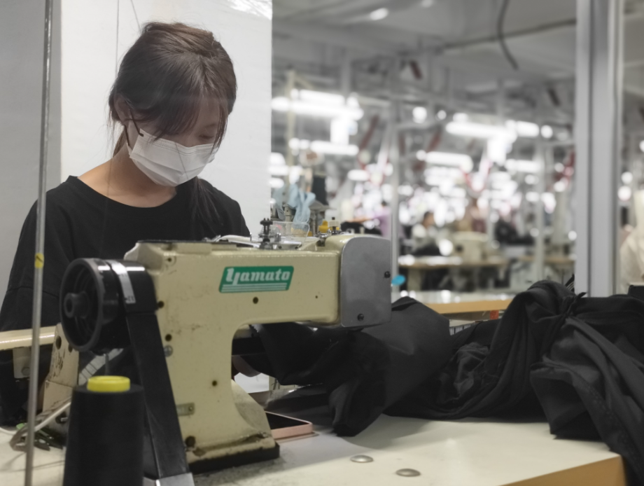 7月29日,成武县汶上集镇万丽时装服装生产车间内,千余名工人正在熟练操作机器,有序配合赶制新款服饰订单。