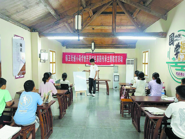 中国菏泽网消息(通讯员 纪哲) 8月9日上午,陈王街道新时代文明实践所联合街道团委,在西曹村小荷学堂开展“国防教育进学堂 红色基因永传承”主题活动,孩子们“零距离”感受红色文化,“沉浸式”接受国防教育。