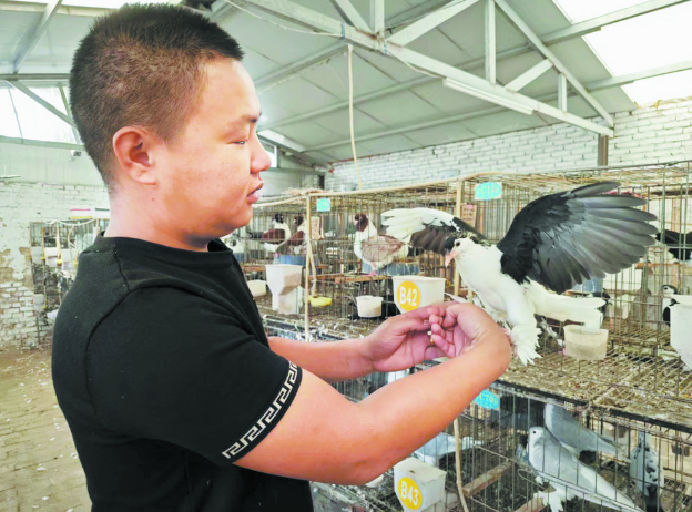 “我从16岁开始饲养观赏鸽,已经积累了一定的经验。”石东东说。几年前,他从上海返乡创业,开始在自家庭院里繁育养殖观赏鸽,经过多年的努力,石东东的养鸽产业规模不断扩大,并牵头成立了观赏鸽养殖合作社,把特色养殖业做大做强。“和一些养殖户合作养殖鸽子,我们负责回收,然后统一销售,这给附近的老百姓带来了可观的收入。”