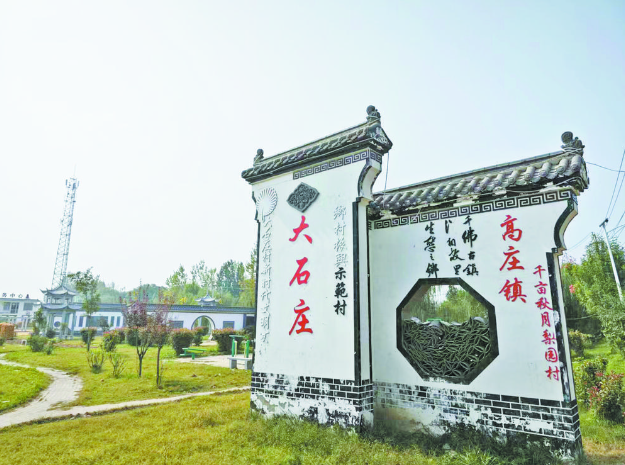 行走在大石庄村,水泥路平坦笔直,道路两旁是绿化植物,房前屋后是刚刚收获的玉米,让人赏心悦目。