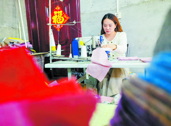 日前,村民张欣在牡丹区沙土镇五道街村的家中加工布料。张欣是该村最早一批从事电商的村民,在她的带动下,周边村庄不少村民投身电商行业,大家在自家院子里加工软体沙发、小型家具等,通过线上销往全国各地。目前,张欣的庭院经济已安置当地10多名村民就业增收,拓宽了乡村致富路。