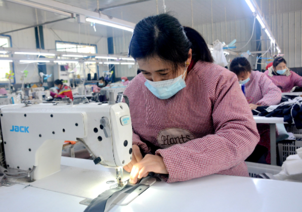 日前,巨野县田庄镇东杨楼村铭锦服装有限公司车间内,工人正在赶制订单。“车间主要经营服装加工类业务,我们采取一对一帮扶、手把手传授技能的方式,让工人早日上岗就业。”东杨楼村党支部书记代素勋告诉记者,车间吸纳周边村民50多人,月收入4000余元,让村民在家门口就能上班。