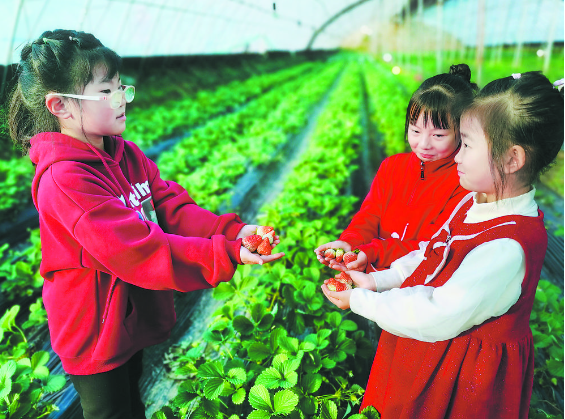近日,鄄城县郑营镇韩屯村种植的草莓迎来成熟季,一颗颗色泽鲜亮、形态饱满的草莓抢“鲜”上市,吸引了众多游客前来观赏采摘。进入草莓大棚,一垄垄碧绿的草莓植株整齐排列,一颗颗饱满红润的草莓从藤蔓中悄悄“探”出头来,果香四溢。