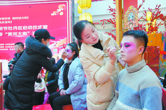 启动仪式现场设四大展区。手造非遗区有菏泽木雕、曹州面人、曹州刻瓷等优秀非遗项目现场展示展演;书法送“福”区邀请书法家现场书写春联和福字,免费赠送群众;新春市集区展示佳和腊味、零食糖果、新春服饰、盲盒潮玩等特色商品;非遗体验区展示大平调戏曲服饰、妆容,邀请群众穿戏服、做造型、拍照打卡,体验传统文化魅力。