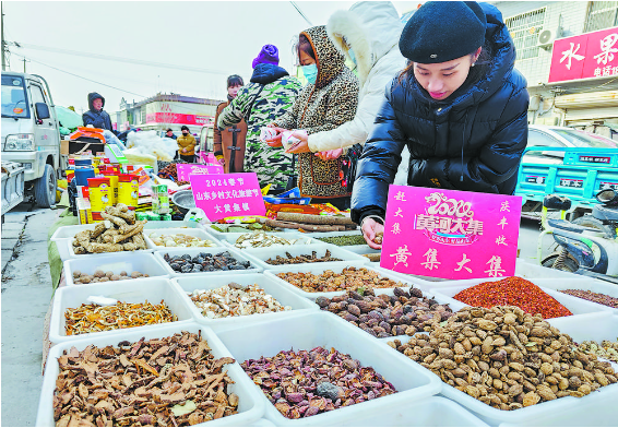 1月21日,牡丹区大黄集镇黄河大集,密密匝匝的摊位前,摆满了琳琅满目的年货。随着春节的临近,牡丹区18个镇街各具特色的黄河大集,不仅可以置办年货感受浓浓的年味,还可以参与各具特色的集市活动。
