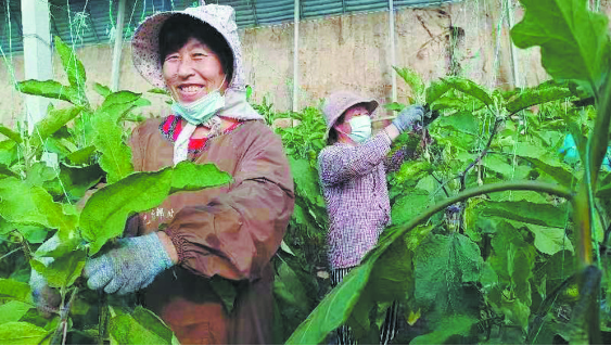 近日,在单县李田楼镇杨洼村日光温室大棚里,来自老龙窝村的杨玉芝和李田楼村的程桂玲正在给长茄吊秧。“这几天正值采收,出棚就装上了大车,没有一会儿的闲空。”杨玉芝笑呵呵地说。