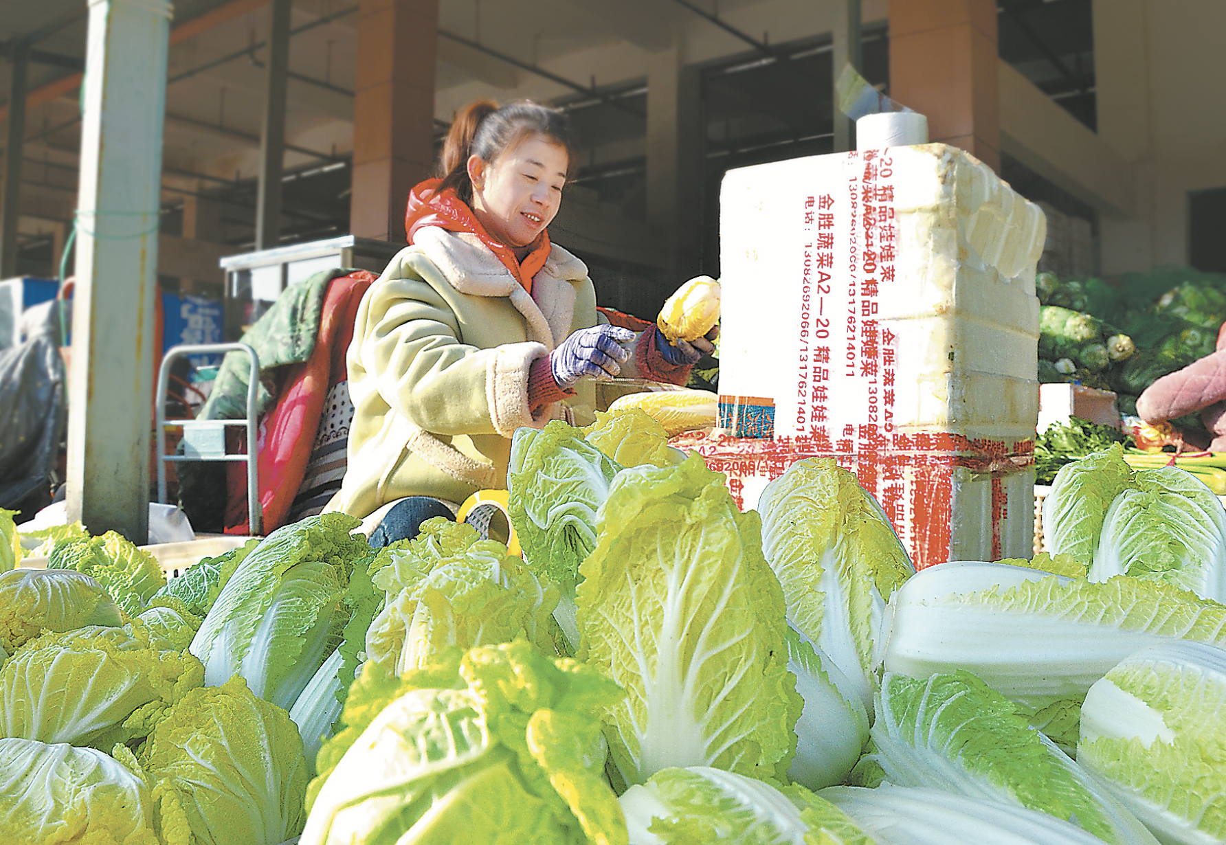 1月26日,牡丹区银田农贸市场,市民正在摊位上挑选蔬菜。眼下,春节临近,年货市场也开始忙碌起来。记者走访菏泽城区各商超、农贸市场发现,“菜篮子”、“米袋子”供应充足、价格稳定,消费市场繁荣有序。据了解,银田农贸目前有固定商户2000余户,每天蔬果、肉类到货量在50万公斤左右,货源供应充足。