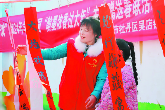 近日,由“学习强国”山东学习平台主办、牡丹区吴店镇承办的学习强国“翰墨浓香过大年”活动举行。据悉,“翰墨浓香过大年”活动是2024春节山东乡村文化旅游节牡丹区系列活动的重要一环。牡丹区的书法家和摄影家来到活动现场,为社区居民写春联、拍全家福,欢声笑语中洋溢着浓浓的新年味道。