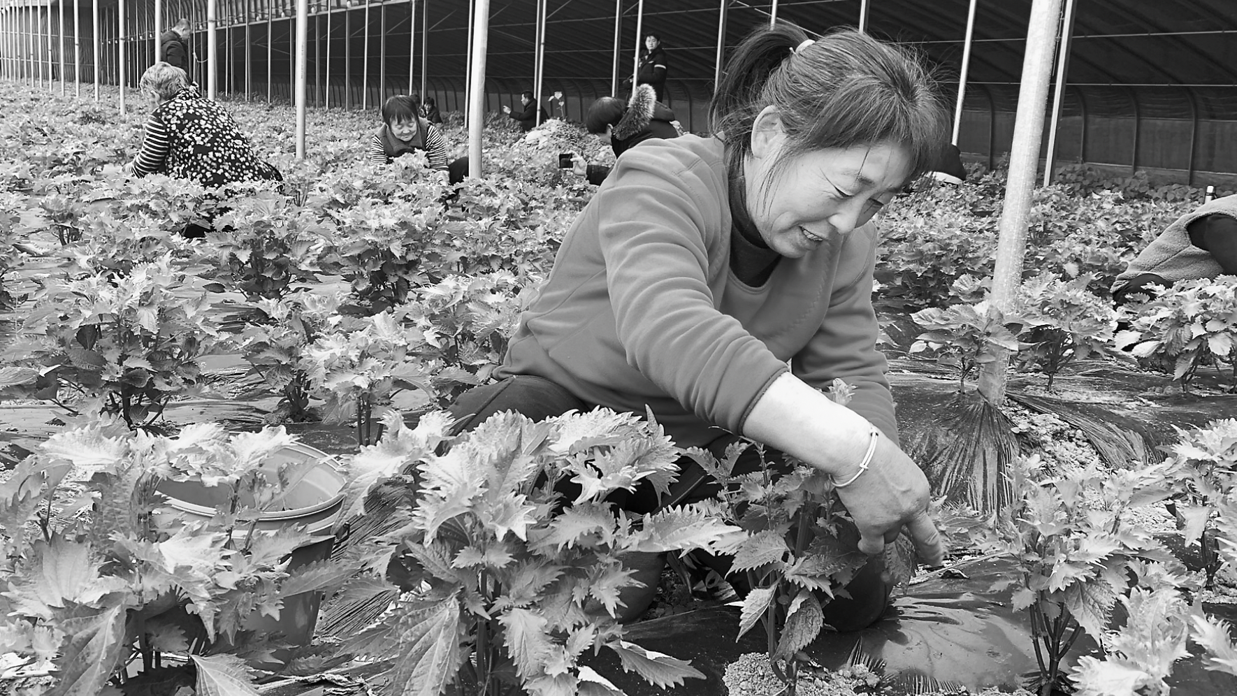 近日,在东明县渔沃街道牛庄村的温室大棚里,附近前来务工的村民正在采摘紫苏叶,村民每天靠采摘紫苏叶就能获得近百元的收入。牛庄村党支部书记李彦光介绍:“牛庄村推行“党支部+公司+农户”的模式,建设了高标准生态棚9个,紫苏叶远销日本等国家,带动附近50余名村民就业,村集体年增收3万余元。”