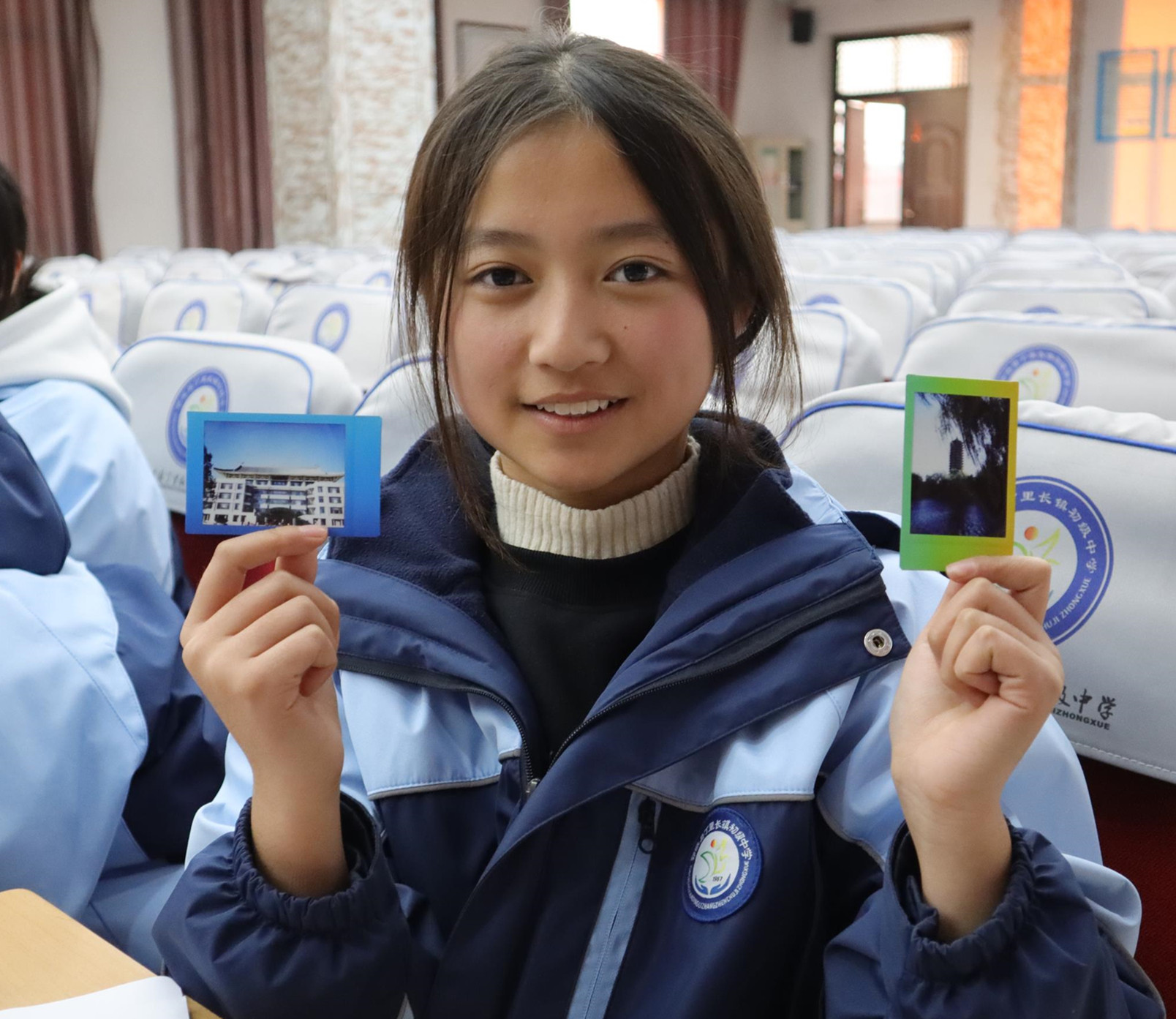 郓城县丁里长街道初级中学学生史嘉欣对北大校园充满好奇,在与北大志愿者姐姐的书信中,表示了想看看北大景色的想法。让她意想不到的是,在最近一次的志愿者姐姐的回信中,史嘉欣收到了北大图书馆和博雅塔、未名湖的照片。