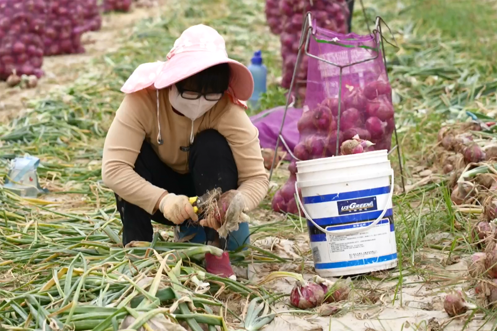 “我们负责装车,每装一吨洋葱就能挣40元,一上午能装15吨,一人能挣200元左右,下午还能挣200元左右,一天最多能挣500多元。”在洋葱地里,负责搬运的村民姚中芝一边忙活,一边笑着对记者说,洋葱的丰收,让像他一样靠体力“吃饭”的村民有了挣钱的门路。