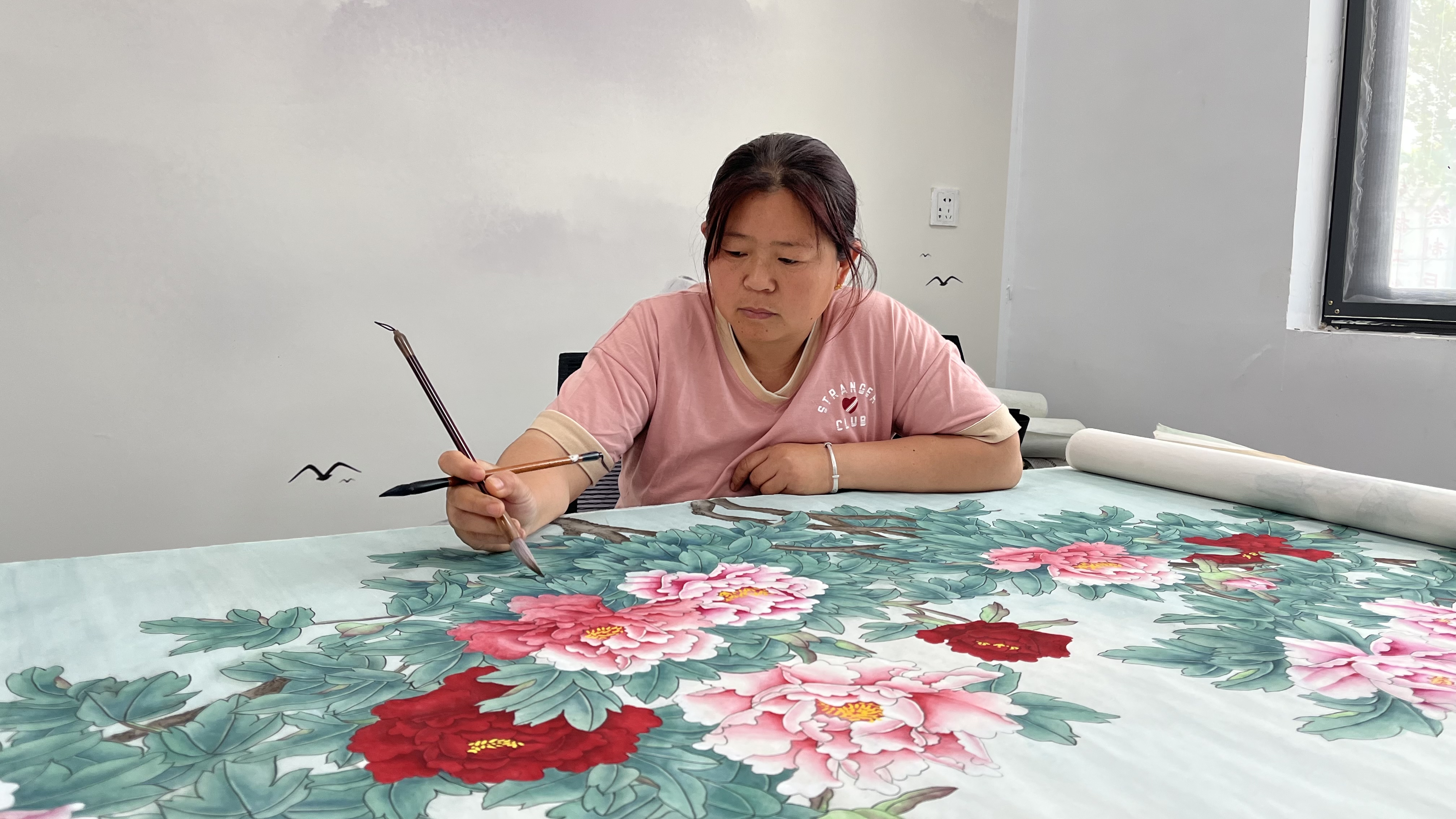 ▼近日,在巨野县田桥镇柏杏书画院,村民正在绘制工笔牡丹。据了解,为进一步拓宽群众的就业增收渠道,当地通过开展技能培训活动,吸纳村民利用闲暇时间在此学习工笔画技能,提升群众的致富本领和自我发展能力。