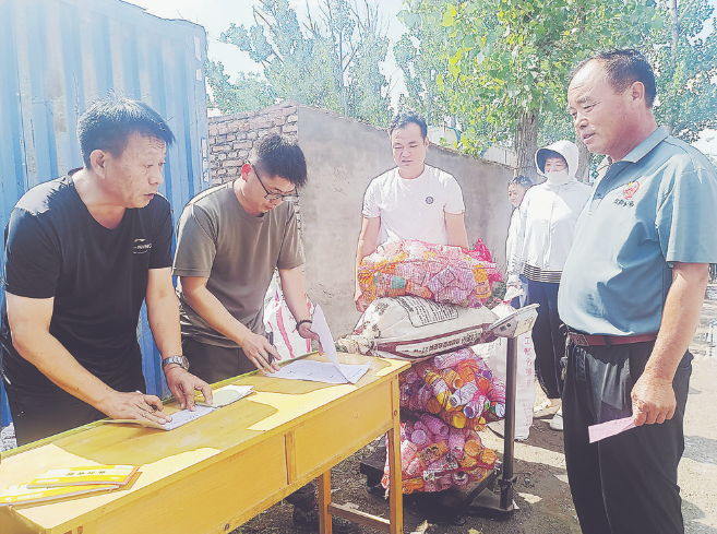 7月9日,定陶区马集镇四合村农业废弃物回收站,村民提着农药瓶、废农膜、农药包装袋等可回收的废弃物品排队等待兑换奖品。“我们镇设置回收点45个,配备奖品23种,今年第二季度共回收农业废弃物0.5吨。下一步,我们将继续开展好‘田园清洁行动’,全面做好农业面源污染治理工作,为和美乡村建设打下良好基础。”马集镇农业农村办主任裴文松说。