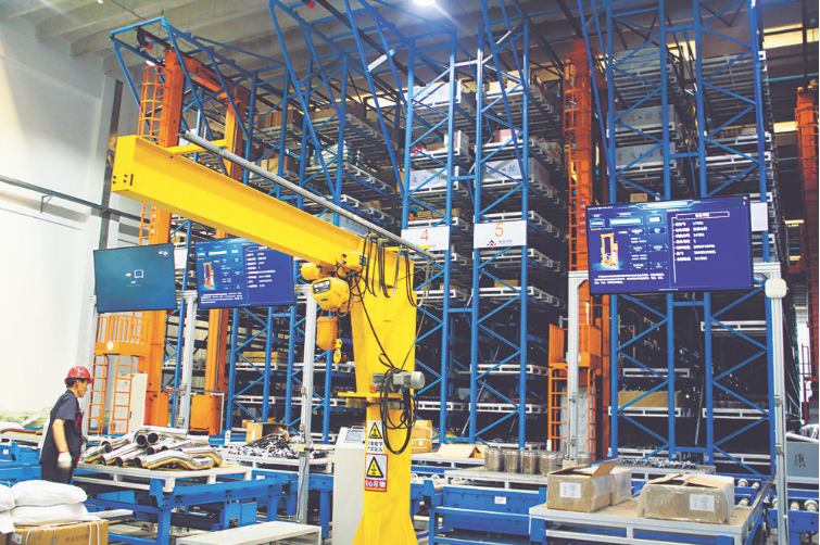 9月7日,山东康沃控股有限公司员工正在数字化仓库内作业。康沃控股位于鲁西新区,是一家新能源动力系统的链主企业、龙头企业。近年来,依托物联网、大数据、人工智能等前沿技术,打造智能化生产车间,生产线自动化率达到75%。引进了数字化仓储系统、智能AGV物流系统、发动机智能装配生产线、测试线等,从生产到组装、测试、发货、仓储,每一个环节都力求实现智能化,极大提高了生产效率和产品质量。