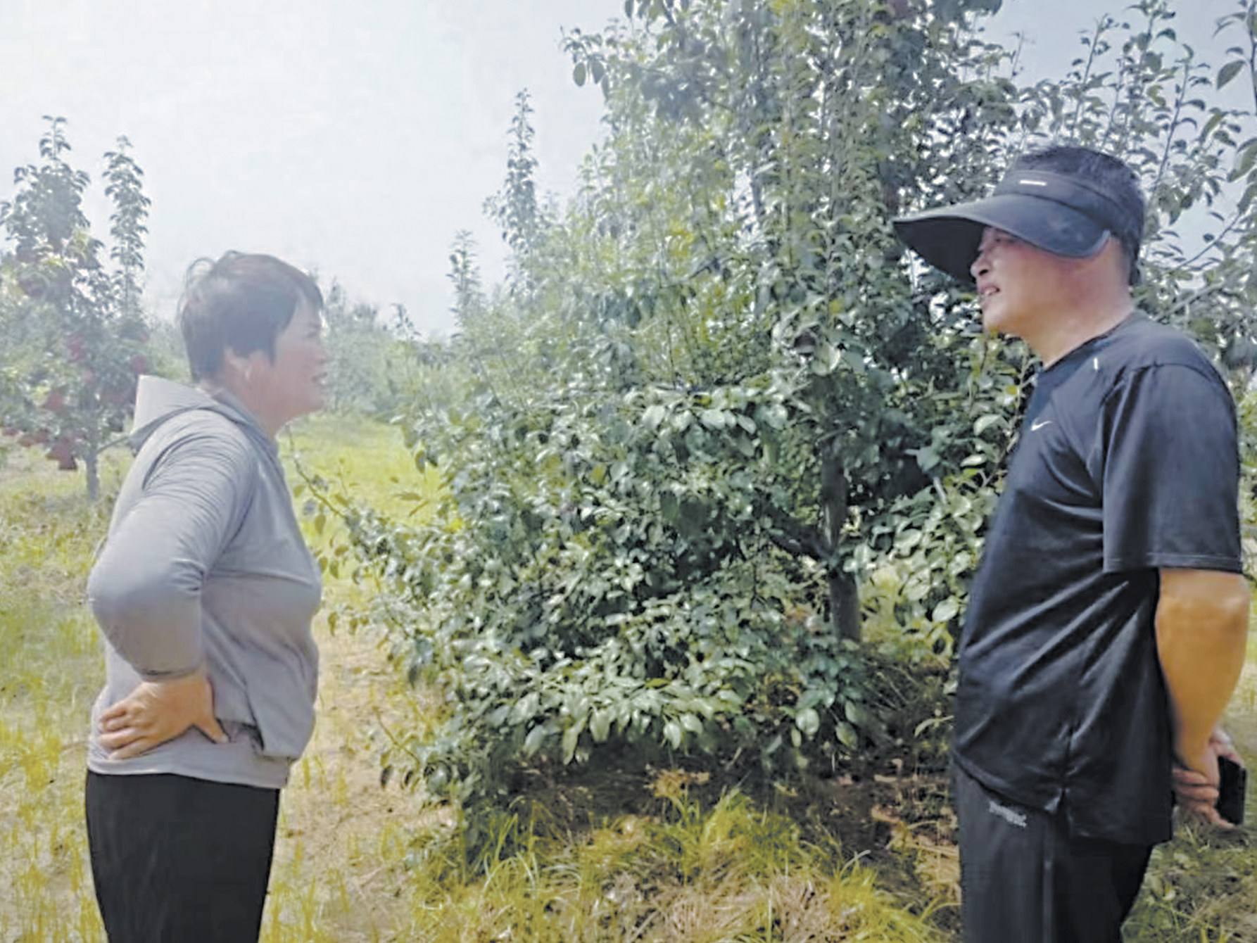2024年夏天,菏泽市发生局地高强度、短历时的强降雨,农田防汛工作关键阶段,周登勇、周心怡深入一线,来到村北部农户果园,调研农田积水及果树挂果情况,详细询问汛情对种植作物的影响与今年果实生长情况。