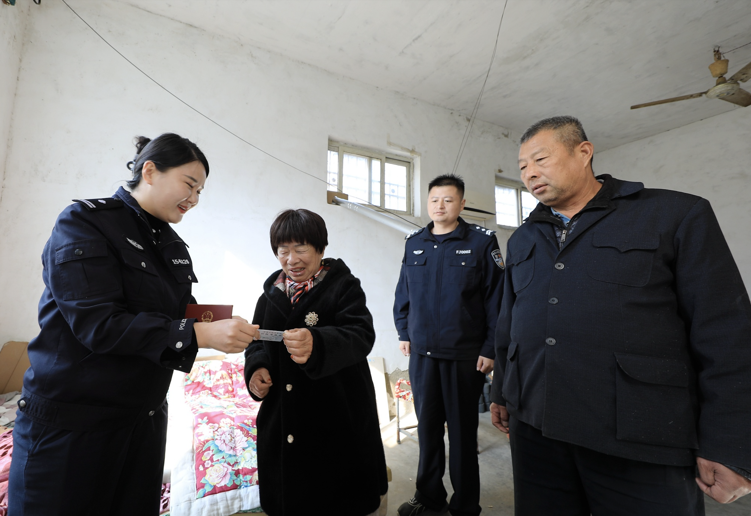 近日,曹县公安局磐石派出所户籍民警拿着身份证和崭新的户口簿来到辖区磐石街道办事处姚寨行政村村民家中,为行动不便的群众送证上门,受到群众称赞。